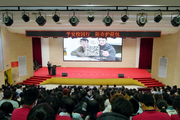 本网讯(通讯员 高阳 学通社见习记者 刘明珠)为进一步增强校园师生对当前突出网络诈骗违法犯罪行为的防范意识和能力,积极营造“平安校园”浓厚氛围,12月2日晚,学校联合东湖高新公安分局在新图书馆二号报告厅开展“平安校园行 防诈护荷包”主题宣传教育活动,邀请了东湖高新公安分局领导、同心派出所民警,刑侦大队、区消防大队、分局交通大队相关专家作专题宣讲,校党委副书记胡兴出席活动。
