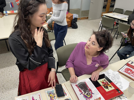 在现场展示环节,外国师生有的拿起毛笔,尝试书写自己的“第一笔”,在一笔一划中感受到中国书法的美学;有的将自己的英文名字翻译成中文,在了解汉字的结构和书写方式中逐渐对中文产生了浓厚的兴趣;有的探秘自己的生肖属相;有的拿起剪刀,用灵巧的双手剪出惟妙惟肖艺术品;有的体验画京剧脸谱,在叹为观止中感受中国非遗文化魅力。多种多样的互动环节让他们对中国传统文化留下深刻记忆。